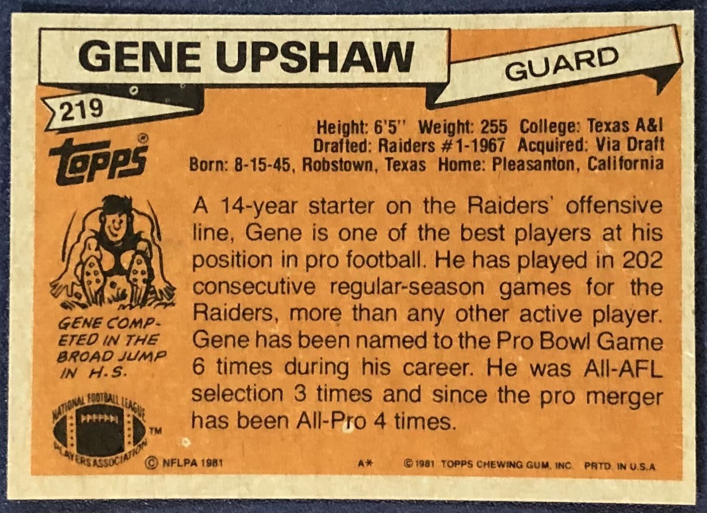 Card #219 NFL, football, vintage, hall of fame