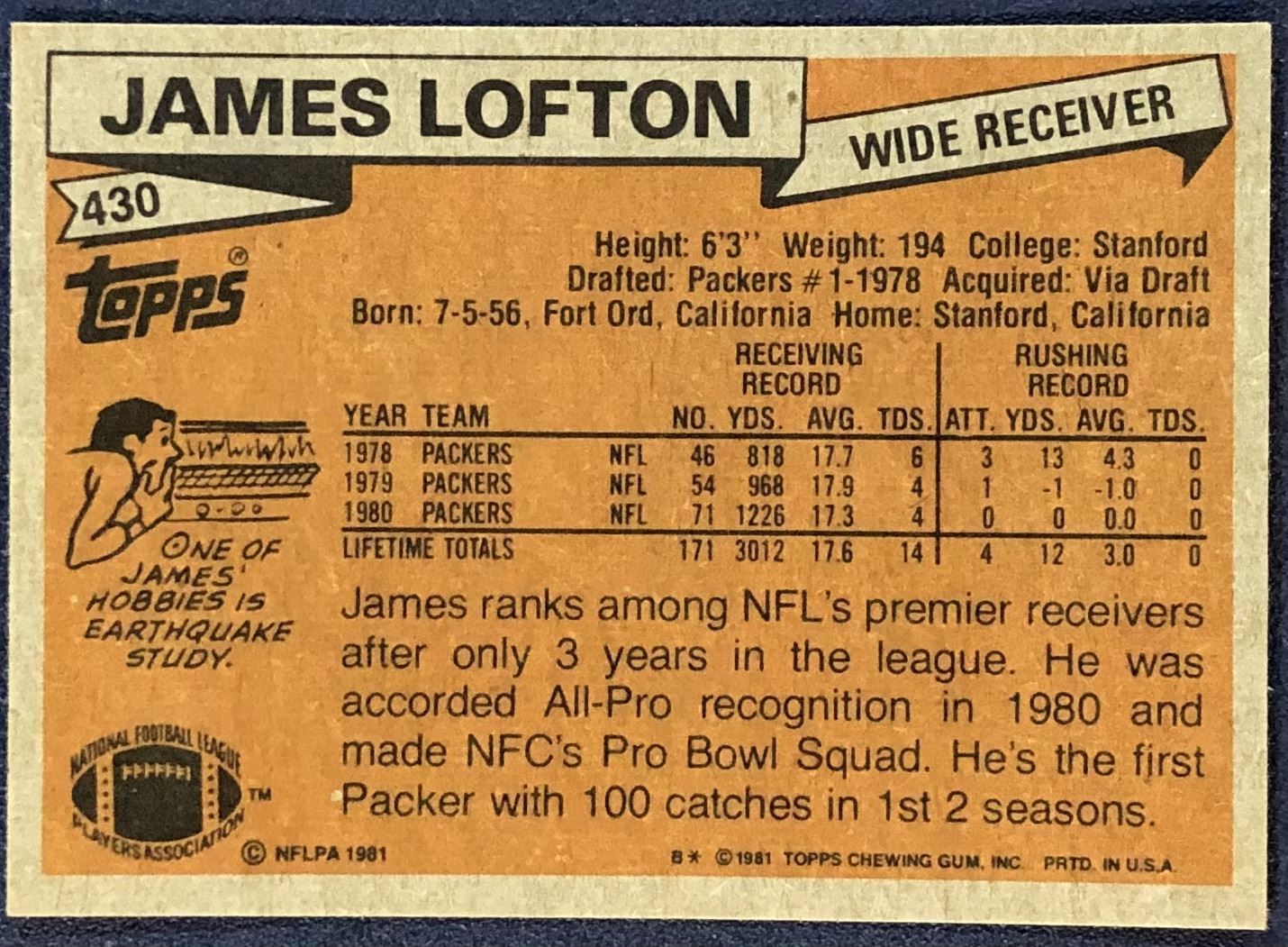 Card #430 NFL, football, vintage