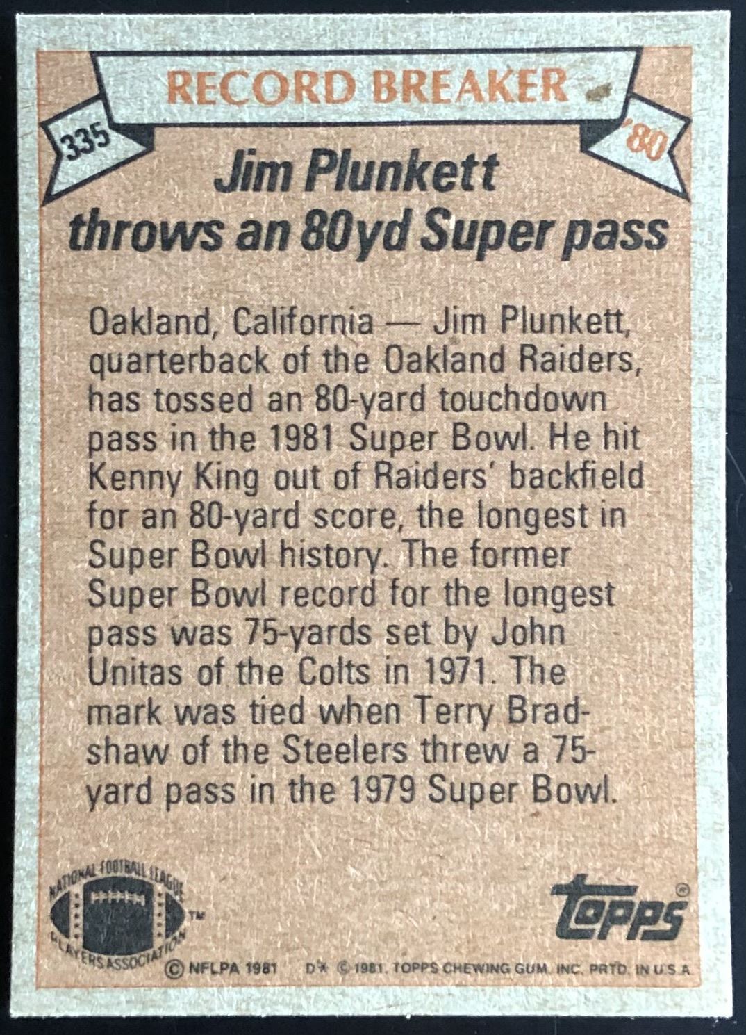 Card #335 NFL, football, vintage