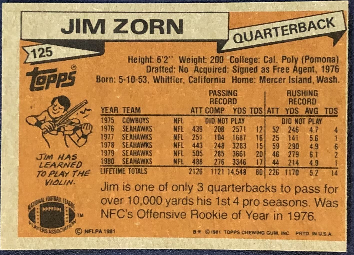 Card #125 NFL, football, vintage