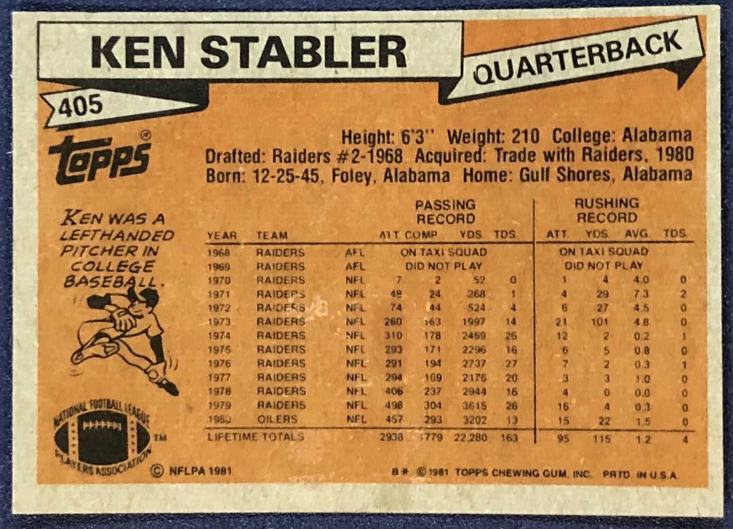 Card #405 NFL, football, vintage, hall of fame