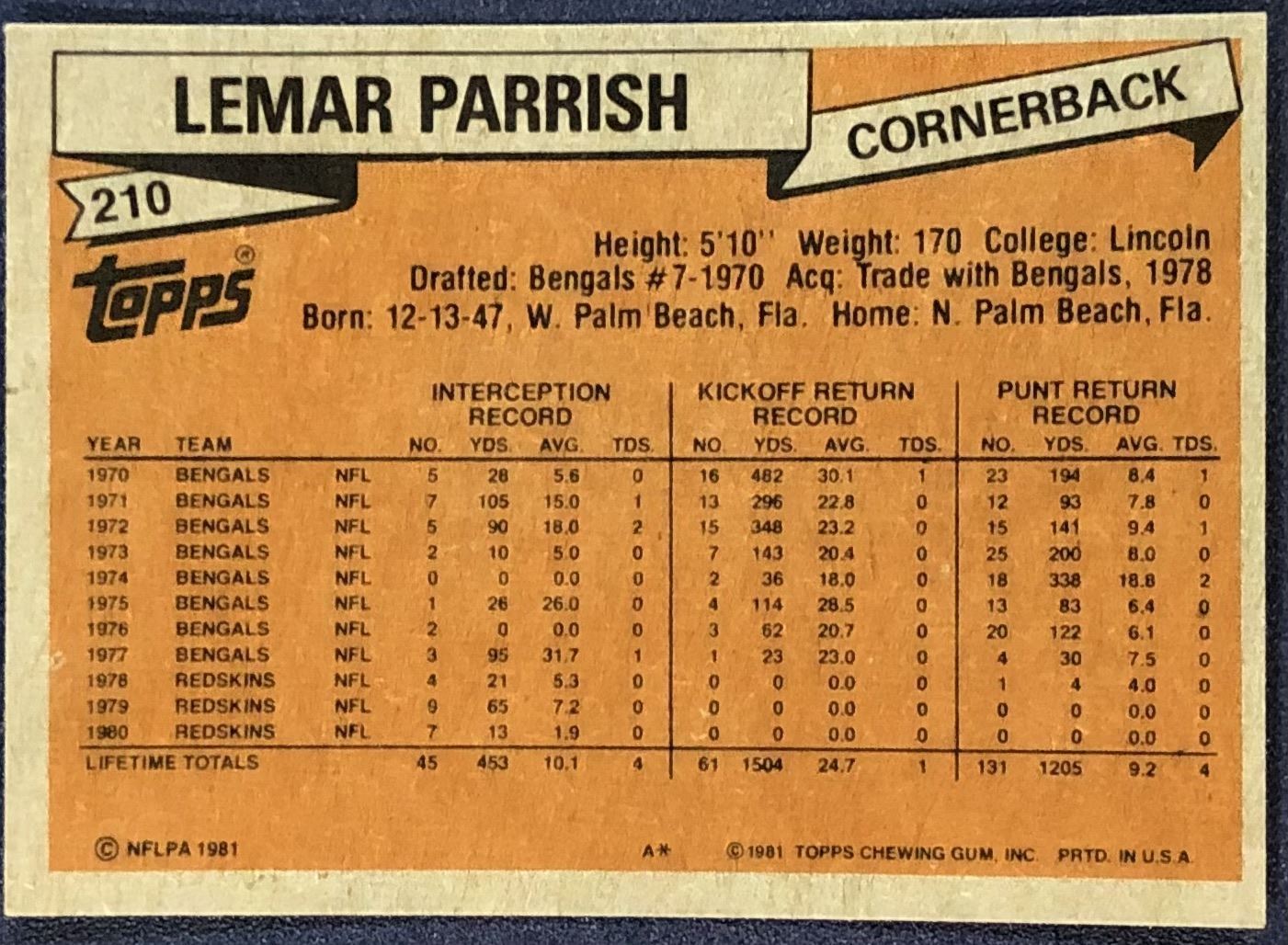 Card #210 NFL, football, vintage