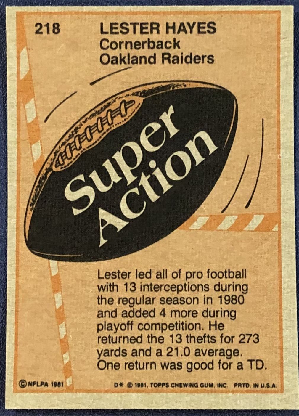 Card #218 NFL, football, vintage
