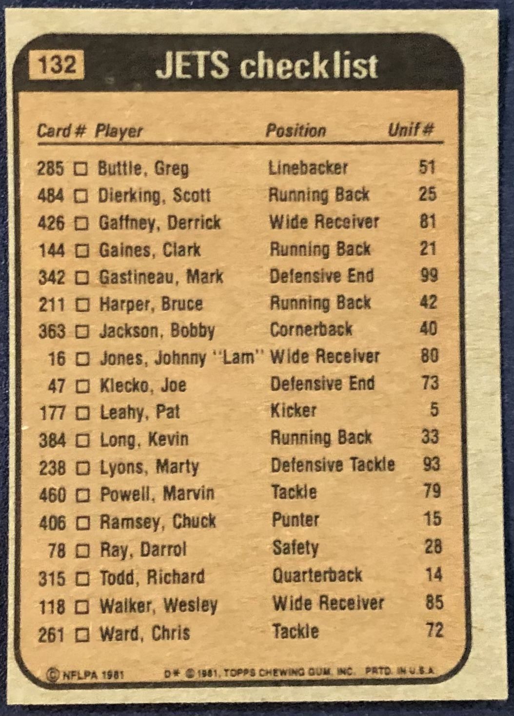 Card #132 NFL, football, vintage