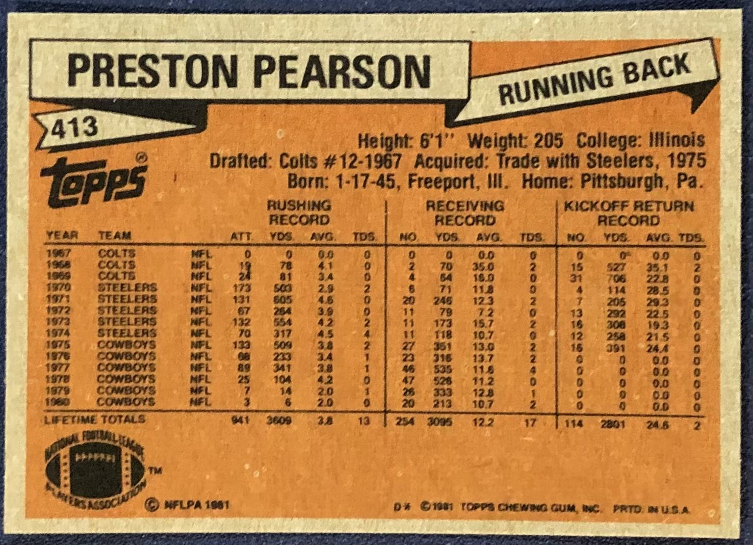 Card #413 NFL, football, vintage