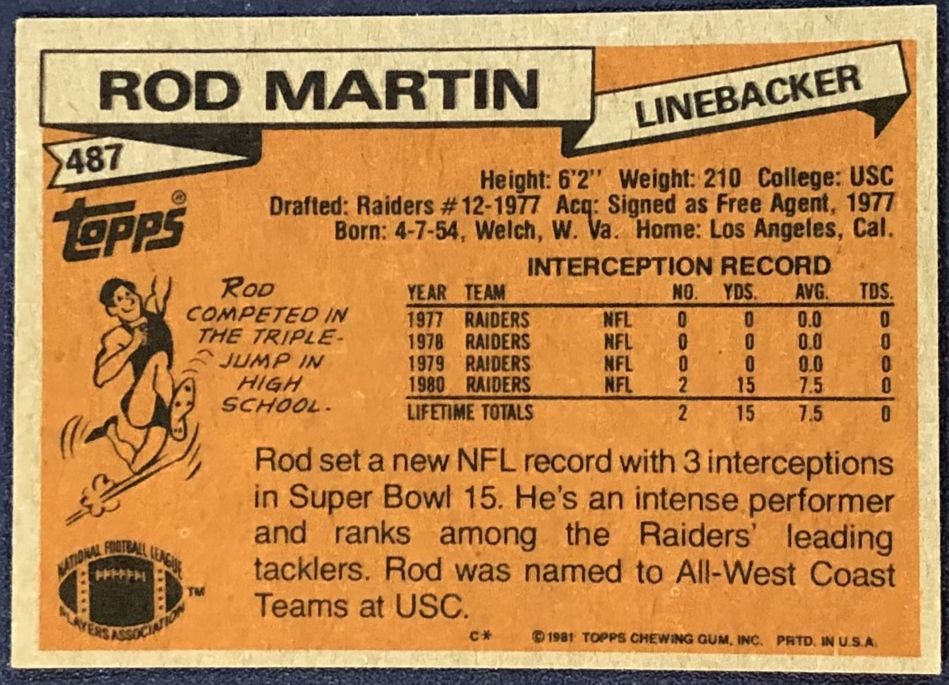 Card #487 NFL, football, vintage
