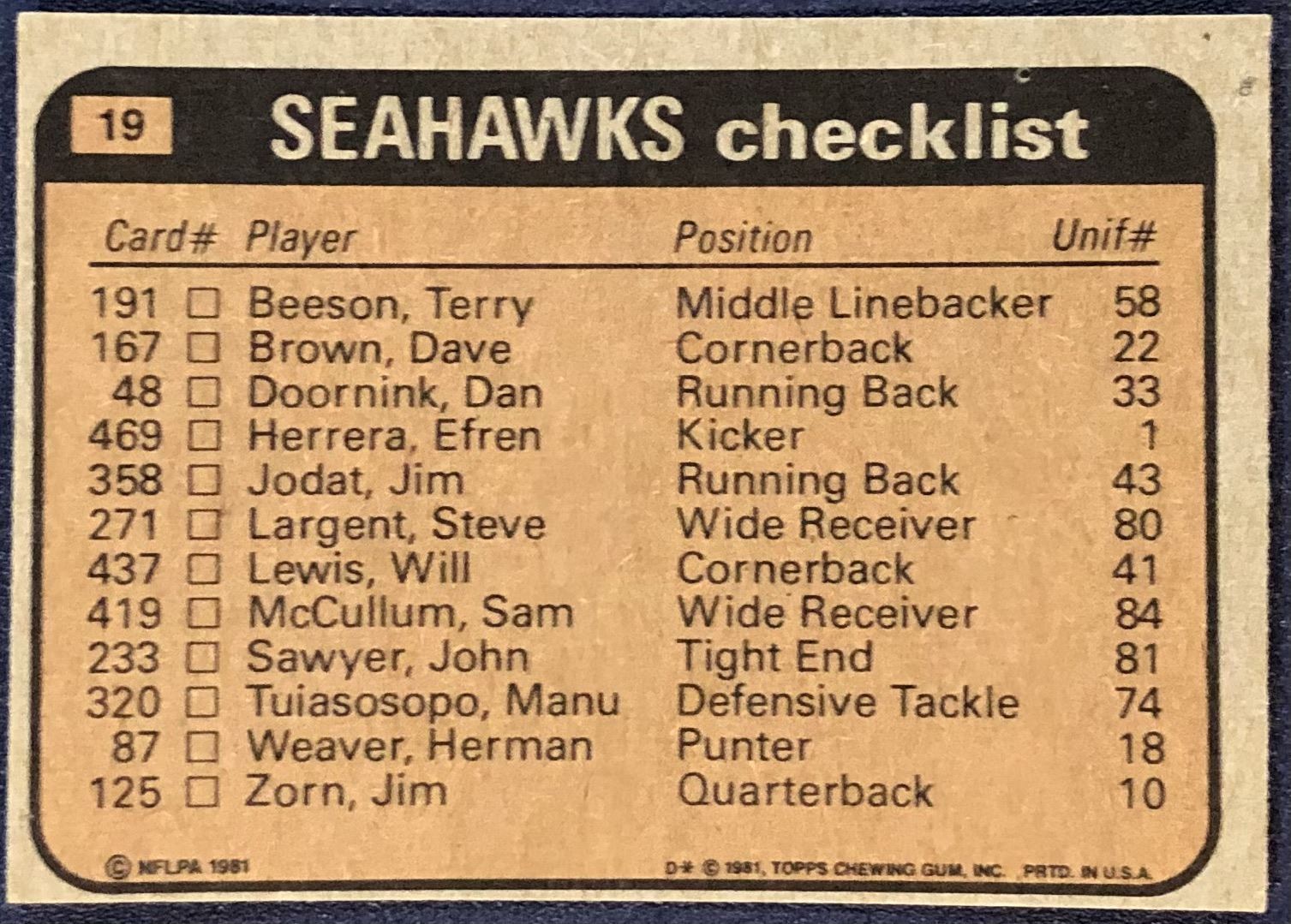Card #19 NFL, football, vintage