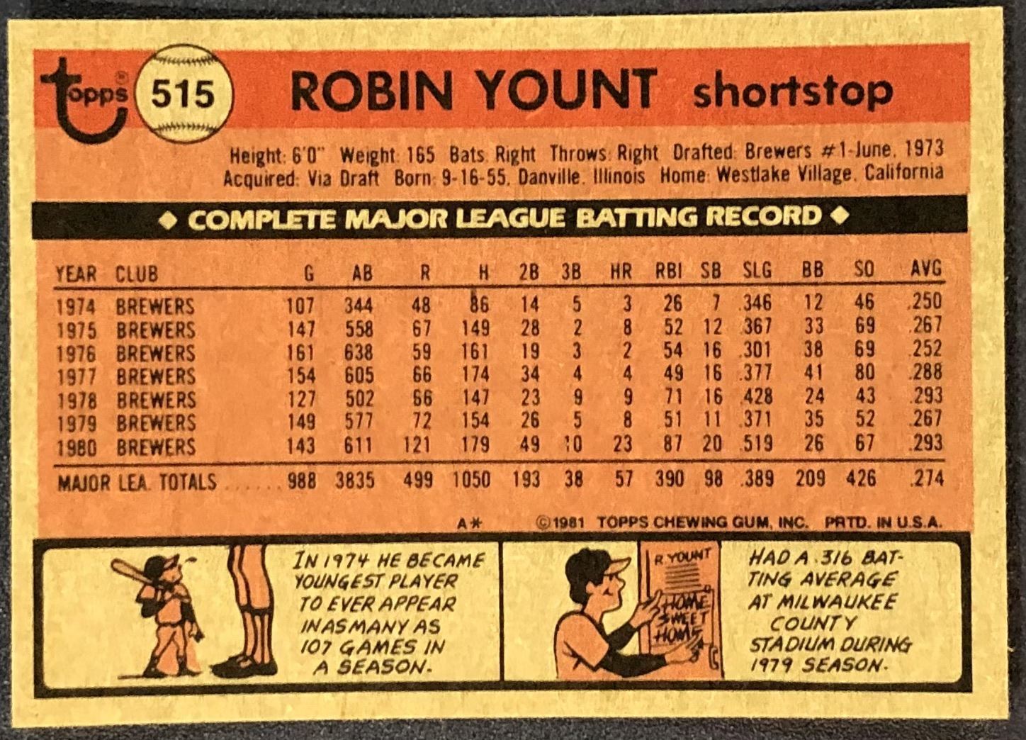 Card #515 MLB, baseball, vintage, hall of fame
