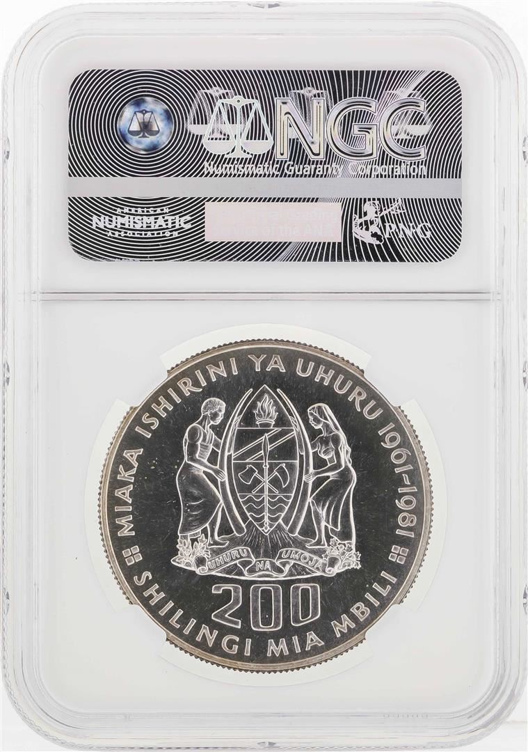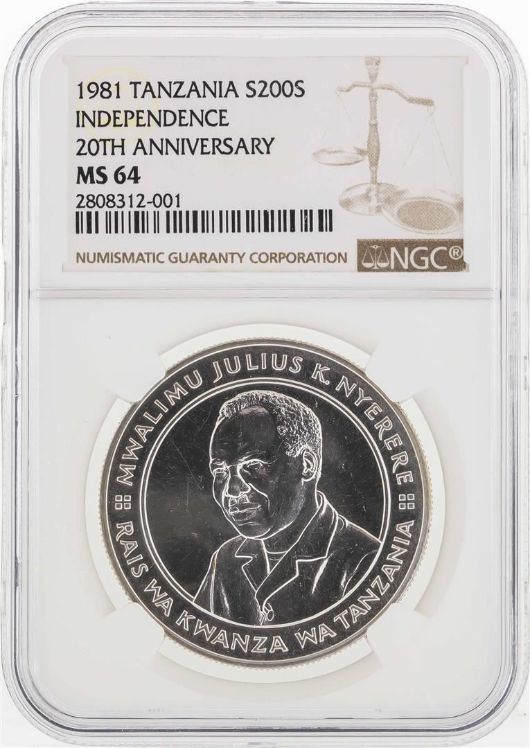 One 1981 Tanzania 200 Shilling Silver Coin NGC MS64. NGC Certified.