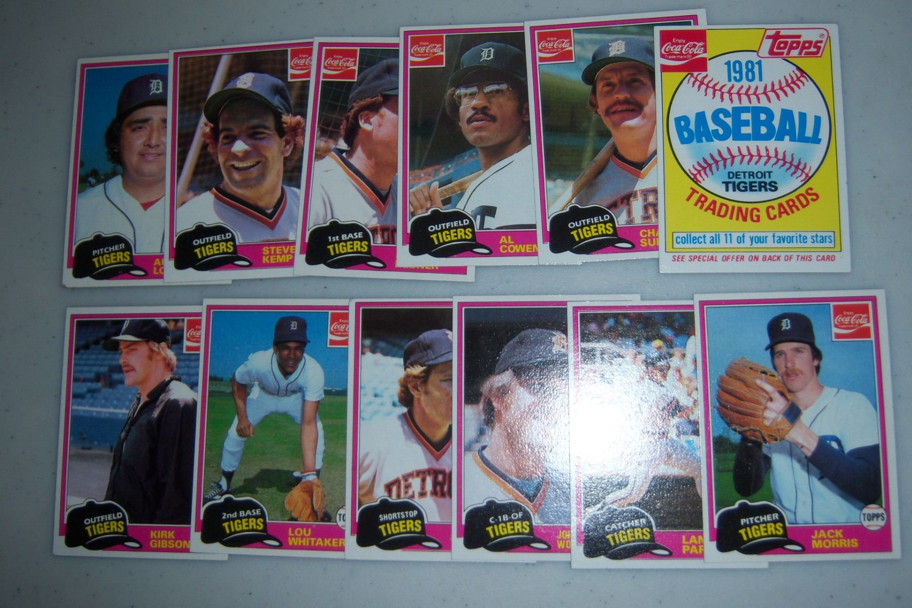 1981 Topps Coca Cola Baseball Detroit Tigers Team set of 11 cards plus the header card