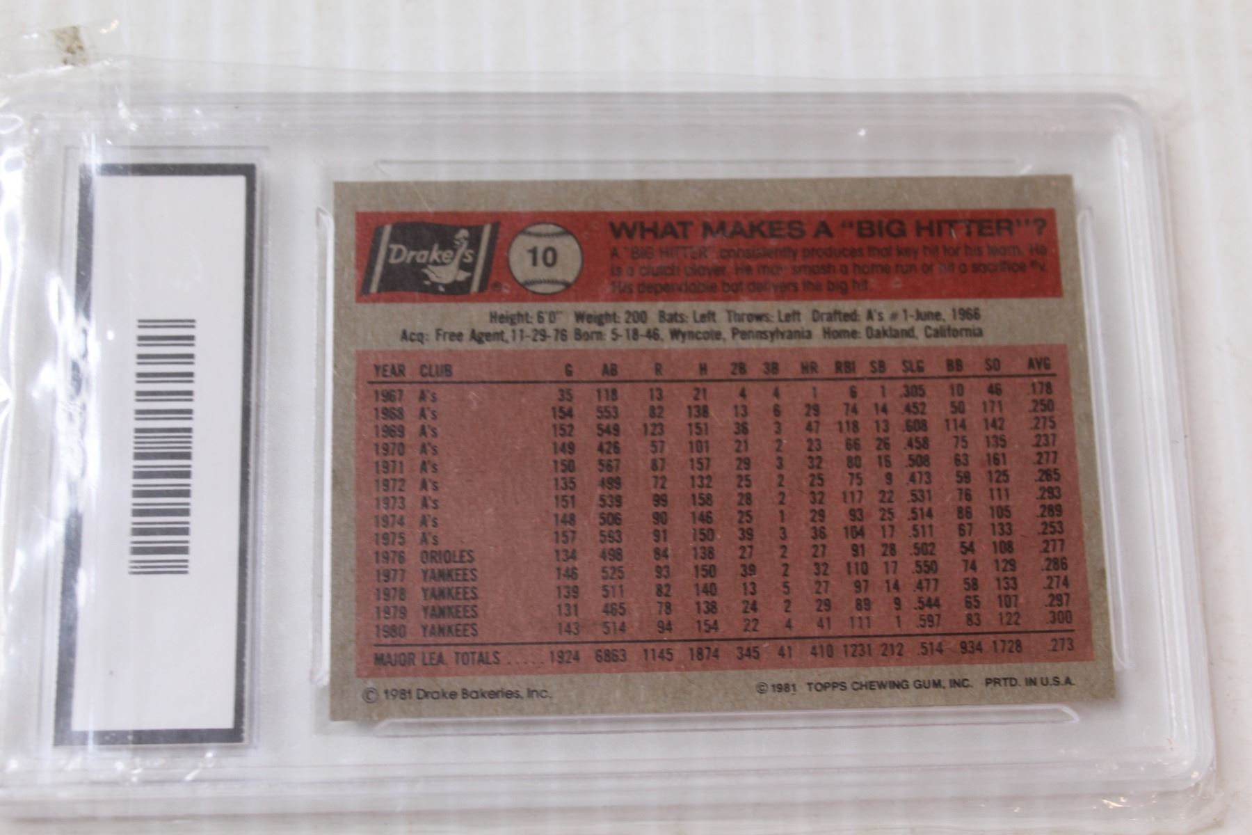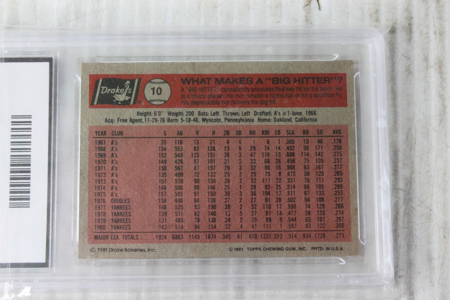 1981 Topps Drake's Reggie Jackson #10 Collectors Edition Graded GMA 7