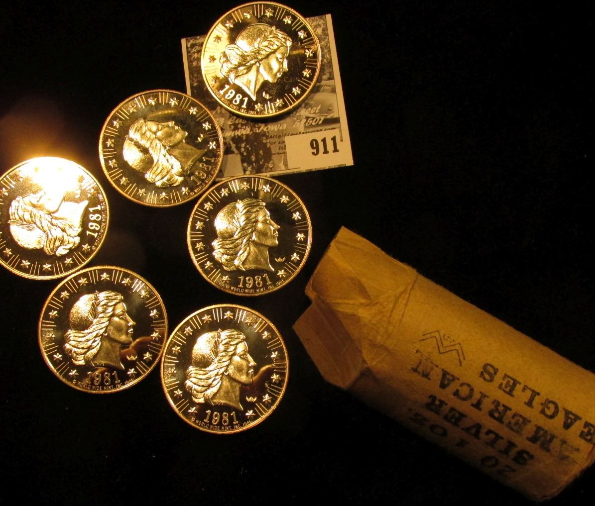 1981 Twenty-piece Original BU Roll of World Wide Mint Proof Issue One Ounce .999 Fine Silver Rounds in original wrapper of issue. (20 pcs.).