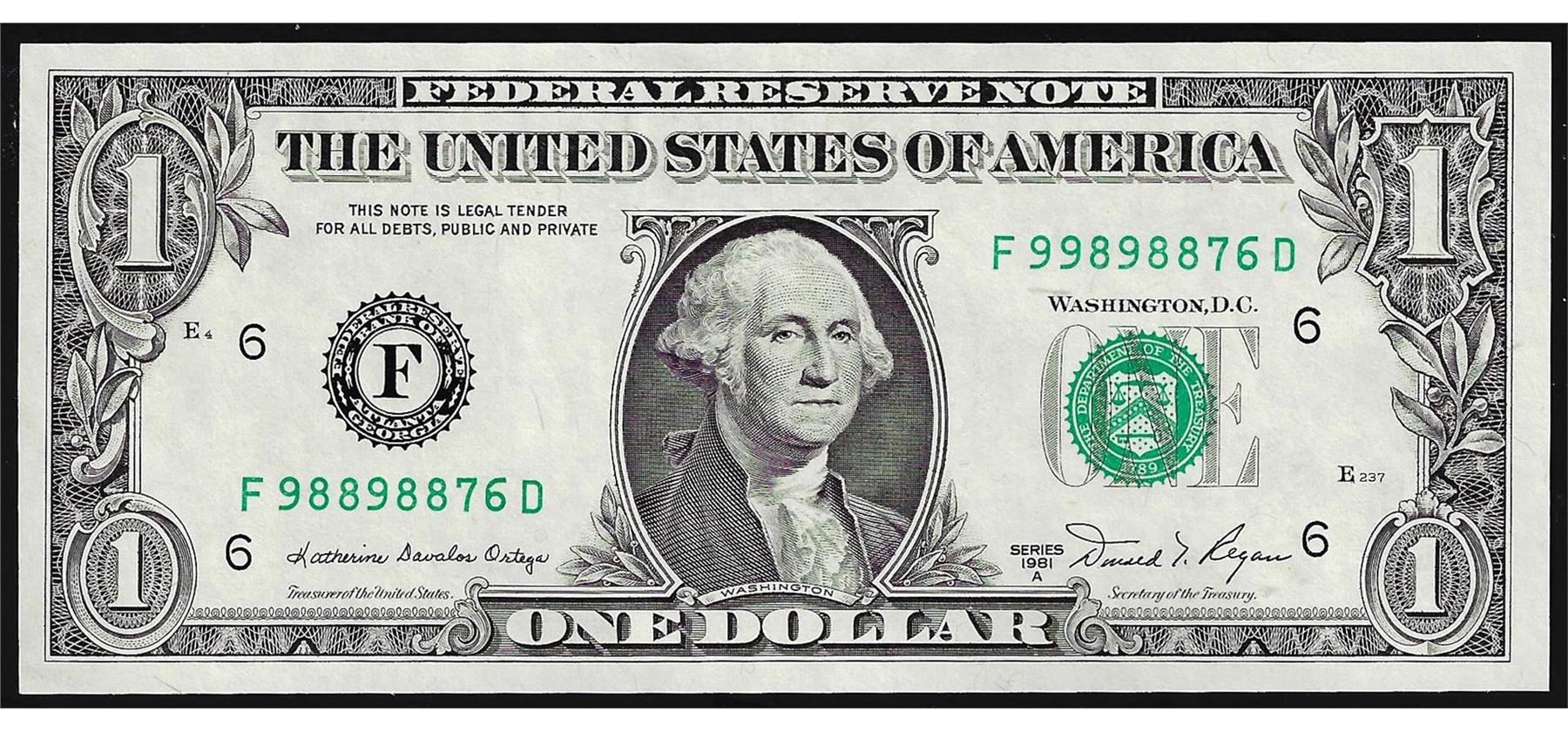 One 1981A $1 Federal Reserve Note Mismatch Serial Number ERROR.