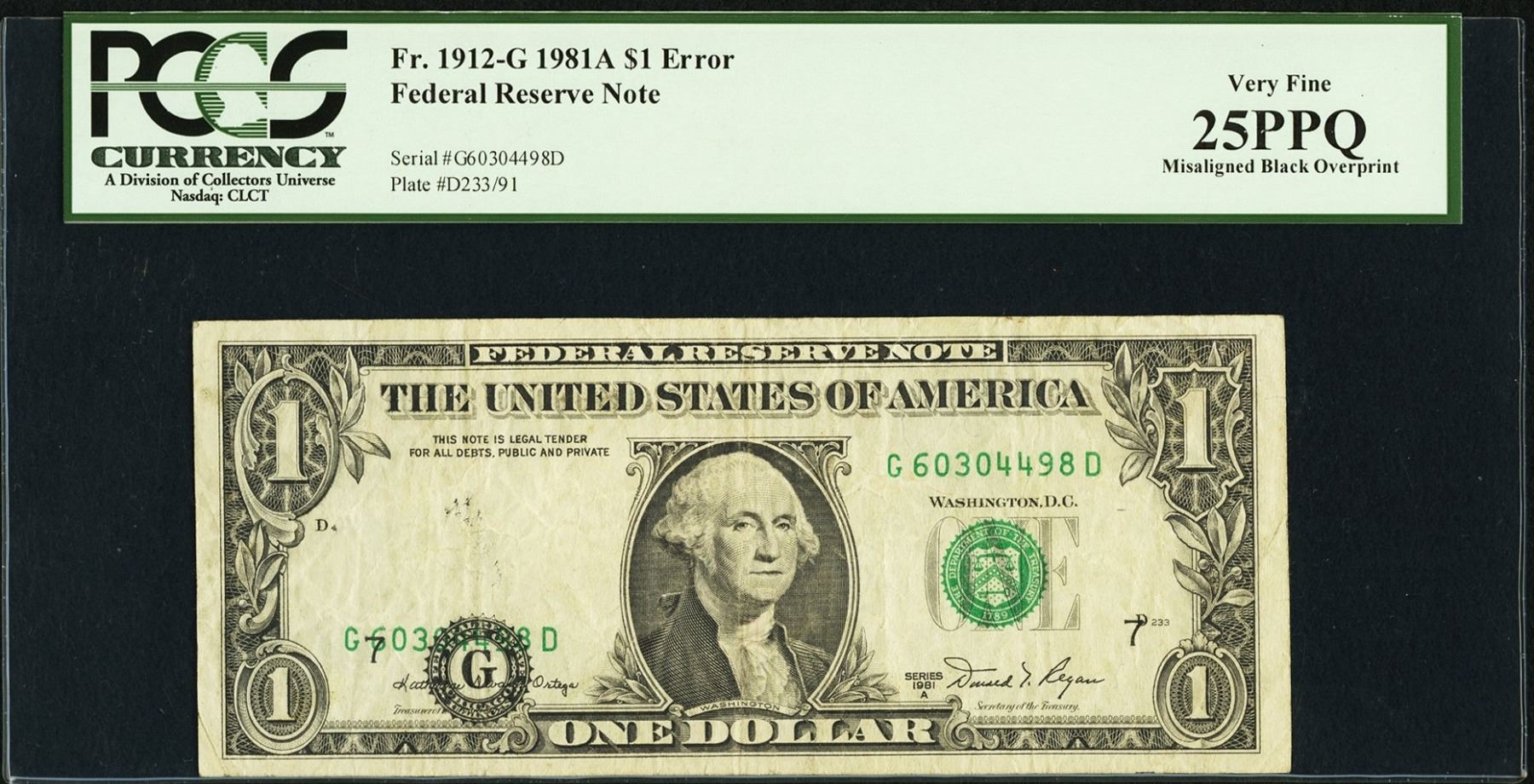 1981A $1 Shifted Black Portion of Third Printing Error Note PCGS 25PPQ