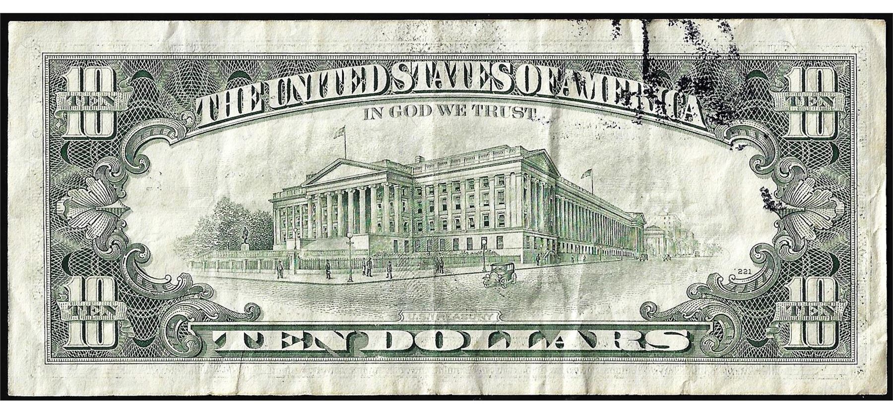 1981A $10 Federal Reserve Partial Offset and Ink Smear Error Note