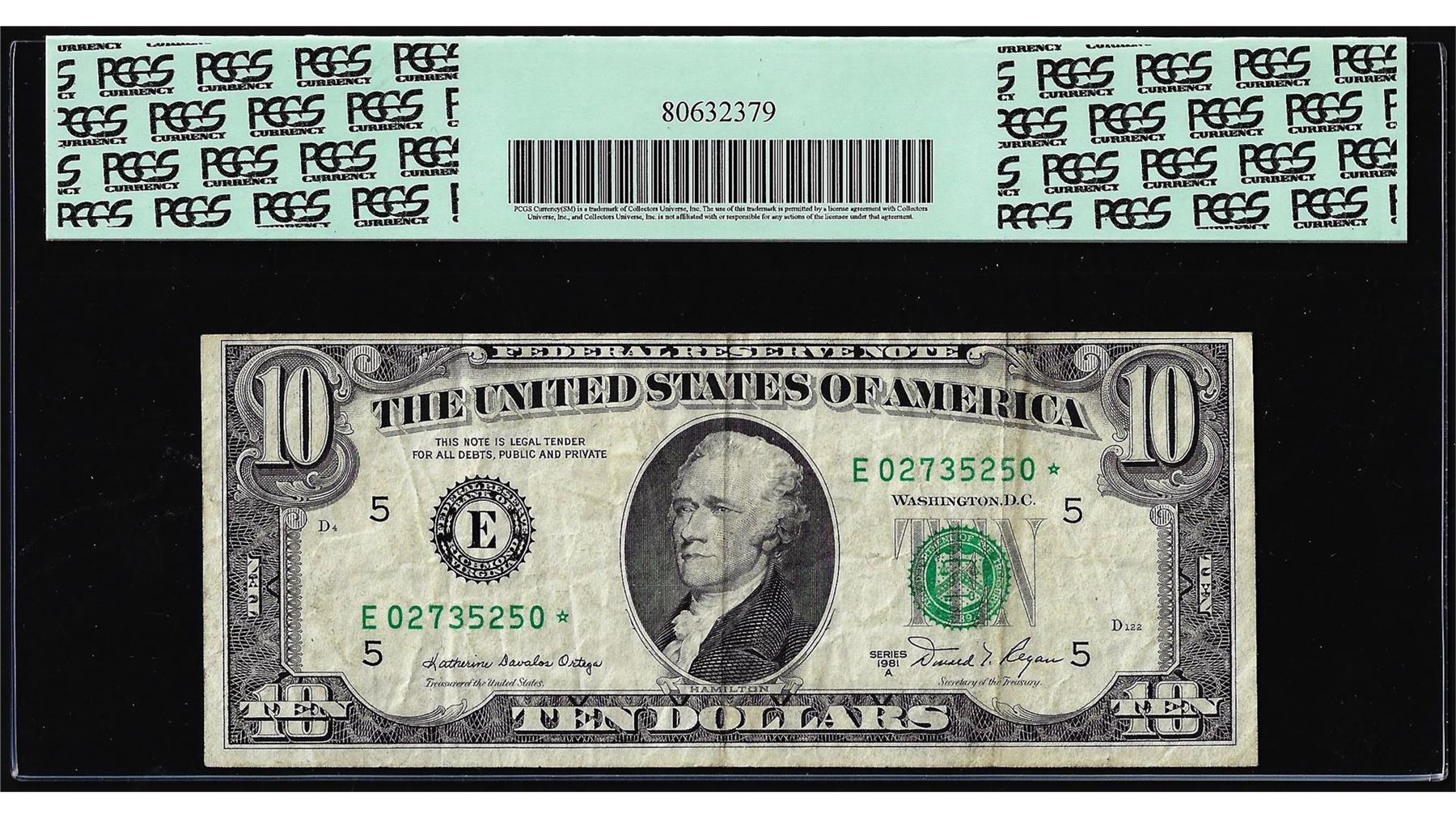1981A $10 Federal Reserve Star Note Fr.2026-E Partial Offset Error PCGS Very Fine 25
