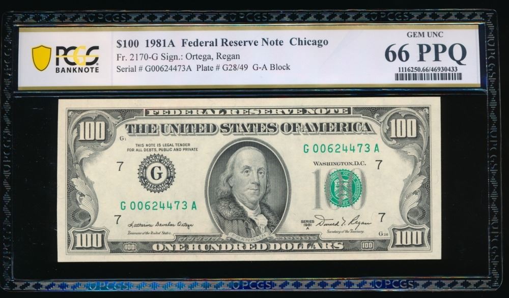 One 1981A $100 Chicago FRN PCGS 66PPQ.