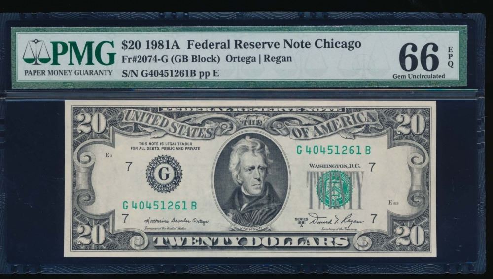 One 1981A $20 Chicago Federal Reserve Note PMG 66EPQ.