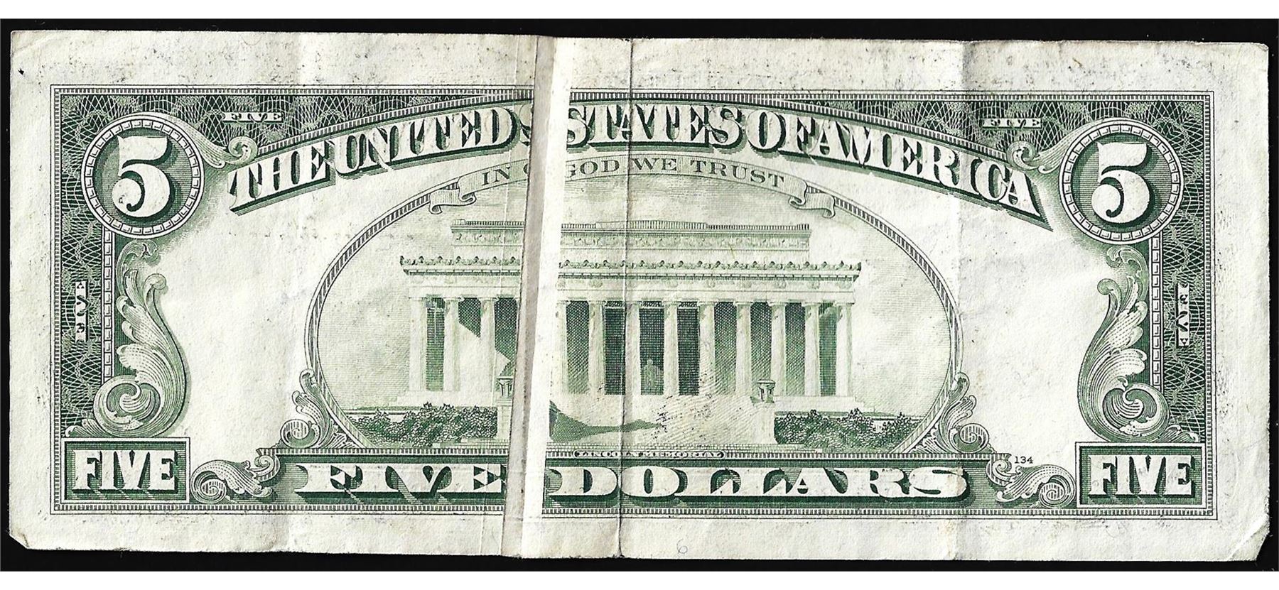 One 1981A $5 Federal Reserve Gutter Fold Error Note.