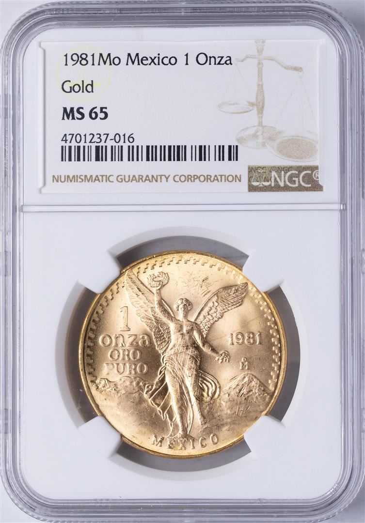 One 1981MO Mexico 1 Onza Libertad Gold Coin NGC MS65. NGC Certified.