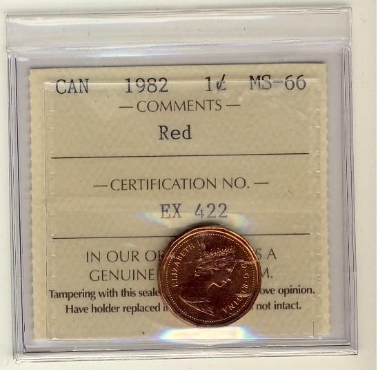 1982 1¢ ICCS MS66 Full Red, A superb GEM example.