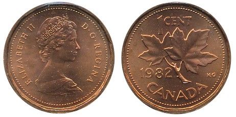 1982 1¢ ICCS MS67RD. Pristine fully lustrous 100% red example. Top 6.