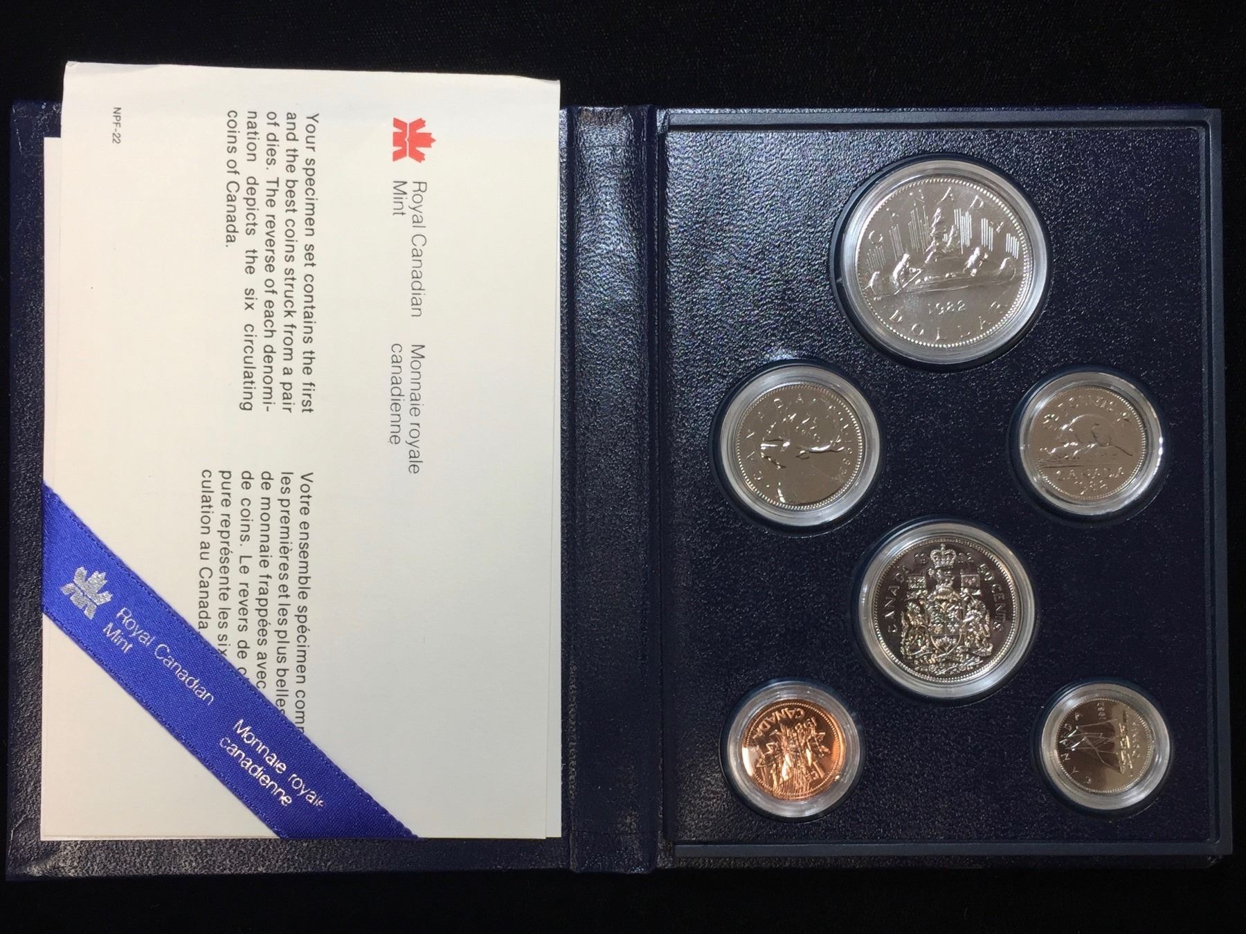 Lot 33; 1982 $1 Voyageurs Canadian Specimen Set, Includes COA and Blue Case