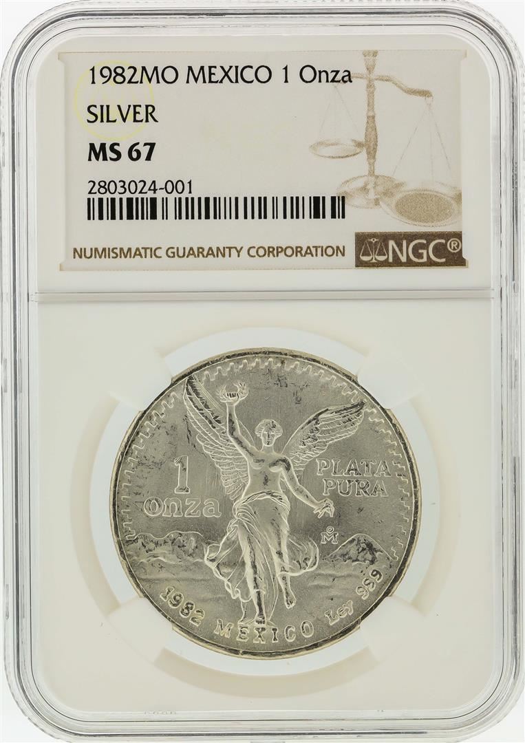 One 1982 1 oz Mexico Silver Libertad Coin NGC Graded MS67. NGC Certified.