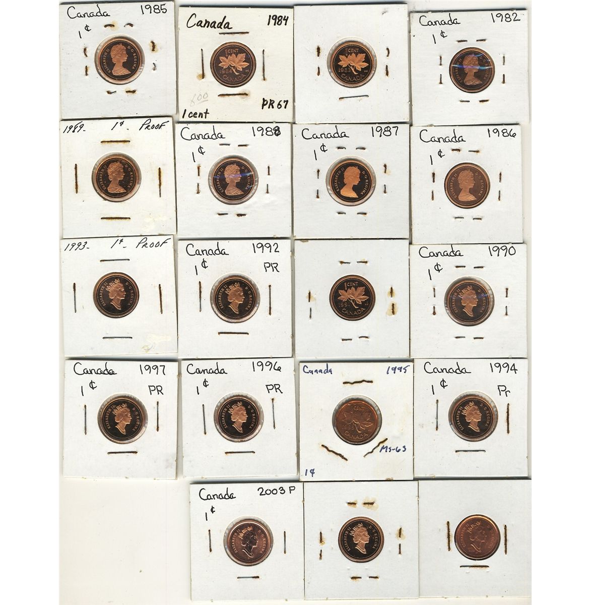 1982 1¢ to 2003P all Proofs to Proof likes 65-67. Lot of 16 pcs.