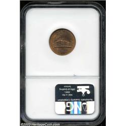 <table><tr><td><TABLE cellSpacing=0 cellPadding=0 width="100%" bgColor=#000000 border=0><TBODY> <TR><TD width="100%"><TABLE cellSpacing=1 cellPadding=3 width="100%" border=0><TBODY><TR><TD width="100%" bgColor=#79735c><FONT face=arial color=#ffffff size=3><B>Description</B> </FONT></TD></TR><TR><TD width="100%" bgColor=#ffffff><FONT face=arial size=2><B>1982 (1759 dated) MS Martha Washington Cent-Sized Medalet, Judd-2180, Pollock-4100, R.8, MS66 Red and Brown NGC.</B></I> 2.5 grams. Struck from the so-called "nonsense dies" that depicts the bust facing right of Martha Washington on the obverse. The reverse shows a view of Mount Vernon. Called "nonsense dies" by the Mint as they lack any mention of a denomination. Struck in copper plated zinc. This is the plate coin in the new Judd book, which gives the following information about this piece: "In 1982, the Martha Washington fantasy design used in 1965 was employed to test a new composition for the cent coinage before there was a change from bronze to copper-coated zinc. Seemingly, these dies were used within the Mint and also by private entities to test various concepts. These have been tentatively attributed to 1982 but may have been made at other times as well." The always-useful and informative USPatterns.com website has even more information on this piece: "A cent struck using the Mint's Martha Washington dies has been reported and purchased by Michael Byers, uspatterns.com member #88. It was purchased along with an example of J2101/P2082...This design was first used in 1965. The obverse was designed by Edward R. Grove and the reverse is by Philip Fowler. This design has since become the Mint's all-purpose dies for testing new alloys. It is likely that this piece was struck outside the Mint from one of the vendors the Mint gave these dies to. Among the possibilities include IDX Inc, PMX Industries and the Olin Brass Corporation. Because of this, we have assigned it number P4100. The reason for their striking may have been to test the new copper coated zinc planchets for the Mint. If this is the case, then this was probably struck around 1982. An obverse die trial in copper struck from either cent or dime dies is also known." This particular coin has lovely red surfaces that show just a bit of mellowed brown patina on each side. There are several raised die scratches that were struck into the coin itself, but there are no obvious pedigree identifiers on either side of this important piece. </FONT></TD></TR></TBODY></TABLE></TD></TR></TBODY></TABLE><BR><A name=PricesRealized></A><TABLE cellSpacing=0 cellPadding=0 width="100%" bgColor=#000000 border=0><TBODY><TR><TD width="100%"><TABLE cellSpacing=1 cellPadding=3 width="100%" border=0><TBODY><TR><TD width="100%" bgColor=#79735c><A name=PR><FONT face=arial color=#ffffff size=3><B>Previous Prices from Heritage Auctions</B> </FONT></A></TD></TR><TR><TD bgColor=#f6f6ed>No Prior Data Recorded </TD></TR><TR><TD bgColor=#ffffff><FONT face=arial size=1 ?>PLEASE NOTE: All prices realized reflect the final hammer price PLUS the buyer's premium in auctions that charge a buyer's premium. Each item has a notation at the top of the listing indicating whether that lot included a buyer's premium. Example: A item that sells with a final hammer price of $100 and a 20% buyer's premium will display with a price realized of $120. All information listed is intended to be as accurate as possible, but errors are possible. Please use this guide carefully and inform us of any inaccuracies. </FONT></TD></TR></TBODY></TABLE></TD></TR></TBODY></TABLE><BR><TABLE cellSpacing=0 cellPadding=0 width="100%" bgColor=#000000 border=0><TBODY><TR><TD width="100%"><TABLE cellSpacing=1 cellPadding=3 width="100%" border=0><TBODY><TR><TD width="100%" bgColor=#79735c colSpan=6><FONT face=arial color=#ffffff size=3><B>Price Guide*</B> </FONT></TD></TR><TR bgColor=#f6f6ed><TD align=middle><B>Grade</B> </TD><TD align=middle><B>Coin World<BR>(Trends)</B> </TD><TD align=middle><B>Numismedia<BR>Retail</B> </TD><TD align=middle><B>Numismedia<BR>Wholesale</B> </TD><TD align=middle><B>Coin<BR>Universe</B> </TD><TD align=middle><B>Heritage<BR>Value Index</B> </TD></TR><TR bgColor=#ffffff><TD align=middle>65</TD><TD align=right>---</TD><TD align=right>---</TD><TD align=right>---</TD><TD align=right>---</TD><TD align=right>---</TD></TR><TR style="FONT-WEIGHT: bold" bgColor=#cccfdd><TD align=middle>66</TD><TD align=right>---</TD><TD align=right>---</TD><TD align=right>---</TD><TD align=right>---</TD><TD align=right>---</TD></TR><TR bgColor=#ffffff><TD align=middle>67</TD><TD align=right>---</TD><TD align=right>---</TD><TD align=right>---</TD><TD align=right>---</TD><TD align=right>---</TD></TR><TR bgColor=#ffffff><TD colSpan=6><FONT size=1>*All information listed is intended to be as accurate as possible, but errors are possible. No item may be returned or refused based on this information which is provided as a service to our customers. You should contact each pricing source directly to determine the accuracy of this information. </FONT></TD></TR></TBODY></TABLE></TD></TR></TBODY></TABLE><BR><TABLE cellSpacing=0 cellPadding=0 width="100%" bgColor=#000000 border=0><TBODY><TR><TD width="100%"><TABLE cellSpacing=1 cellPadding=3 width="100%" border=0><TBODY><TR><TD width="100%" bgColor=#79735c><FONT face=arial color=#ffffff size=3><B>Population Guide</B> </FONT></TD></TR><TR bgColor=#ffffff><TD align=middle></TD></TR></TBODY></TABLE></TD></TR></TBODY></TABLE><BR><TABLE cellSpacing=0 cellPadding=0 width="100%" bgColor=#000000 border=0><TBODY><TR> Important notice: Heritage usually auctions material at the rate of 200-250 lots per hour. On some occasions eBay Live bid software or the Internet may not be able to keep up with the pace of the auction. We recommend placing a realistic absentee bid now as insurance to avoid disappointment. Occasionally the auctioneer may eliminate or reject an eBay Live bid, and the auctioneer may also reopen a lot afte