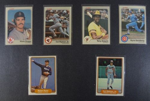 1982 featuring #229 Nolan Ryan & #176 Cal Ripken Jr (R). 1983 includes #179 Wade Boggs (R), #360 Tony Gwynn, #507 Ryne Sandberg, & #70 Cal Ripken Jr. Sets are in Mint condition. They have razor sharp corners, deep color and gloss, & clean fronts / backs. Est. Value $110.00 - $130.00.