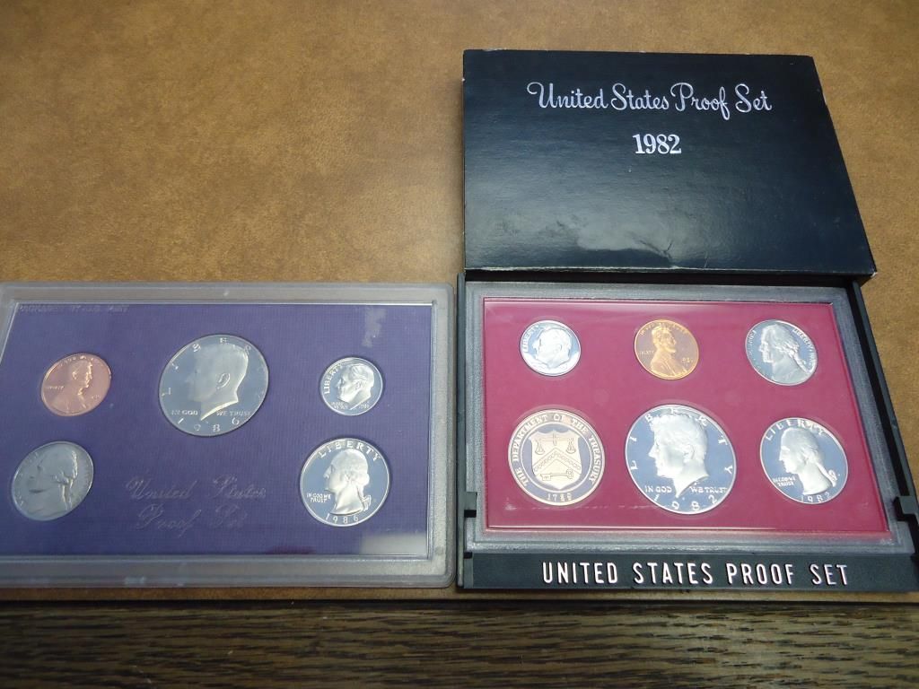 1982 & 1986 US PROOF SETS (WITH BOXES) 86 NO BOX