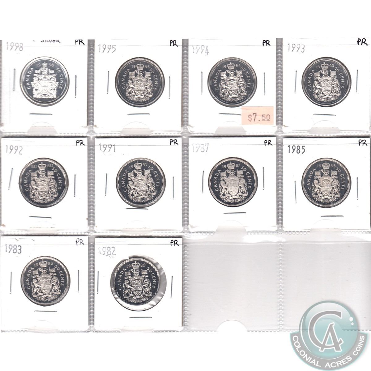1982-1998 Canada Proof 50-cent Collection. You will receive 1982, 1983, 1985, 1987, 1991, 1992, 1993