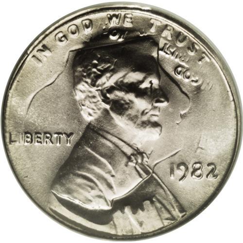 <B>1982 1C Large Date Cent--Struck on a 1981-P Dime--MS67 NGC.</B></I> Roosevelt is nearly inverted relative to Lincoln's portrait, and the flame of the torch flickers beneath the Lincoln Memorial. The cent date is bold, and the dime date and mintmark is legible except for the final digit in the date. This planchet combination is much scarcer with an undertype of a different date.<BR><BR><b>Shipping:</b> Coins & Currency (<a target="_blank" href="http://www.heritageauctions.com/common/shipping.php">view shipping information</a>)