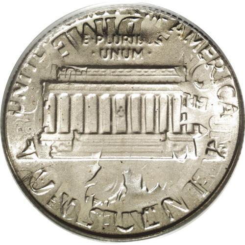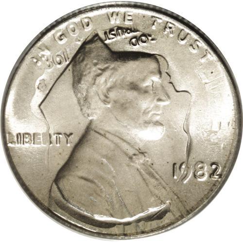 <B>1982<1C> Large Date--Double Denomination on a Struck Dime--MS66 PCGS.</B></I> Roosevelt's head is nearly inverted relative to Lincoln. The dime mintmark and the first three digits of the dime date are clear. The cent date is also crisp. The reverse legends are hopelessly jumbled from the impressions of the two reverse dies. Light golden toning graces this lustrous and unabraded Premium Gem.