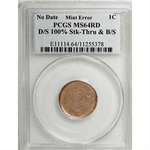 <B>Undated Lincoln Memorial Cent--Double Struck, 100% Struck Thru and Broadstruck--MS64 Red PCGS.</B></I><BR><BR><B>Coin Engraver:</B> Victor D. Brenner<BR><BR><b>Shipping:</b> Coins & Currency (<a target="_blank" href="http://www.heritageauctions.com/common/shipping.php">view shipping information</a>)