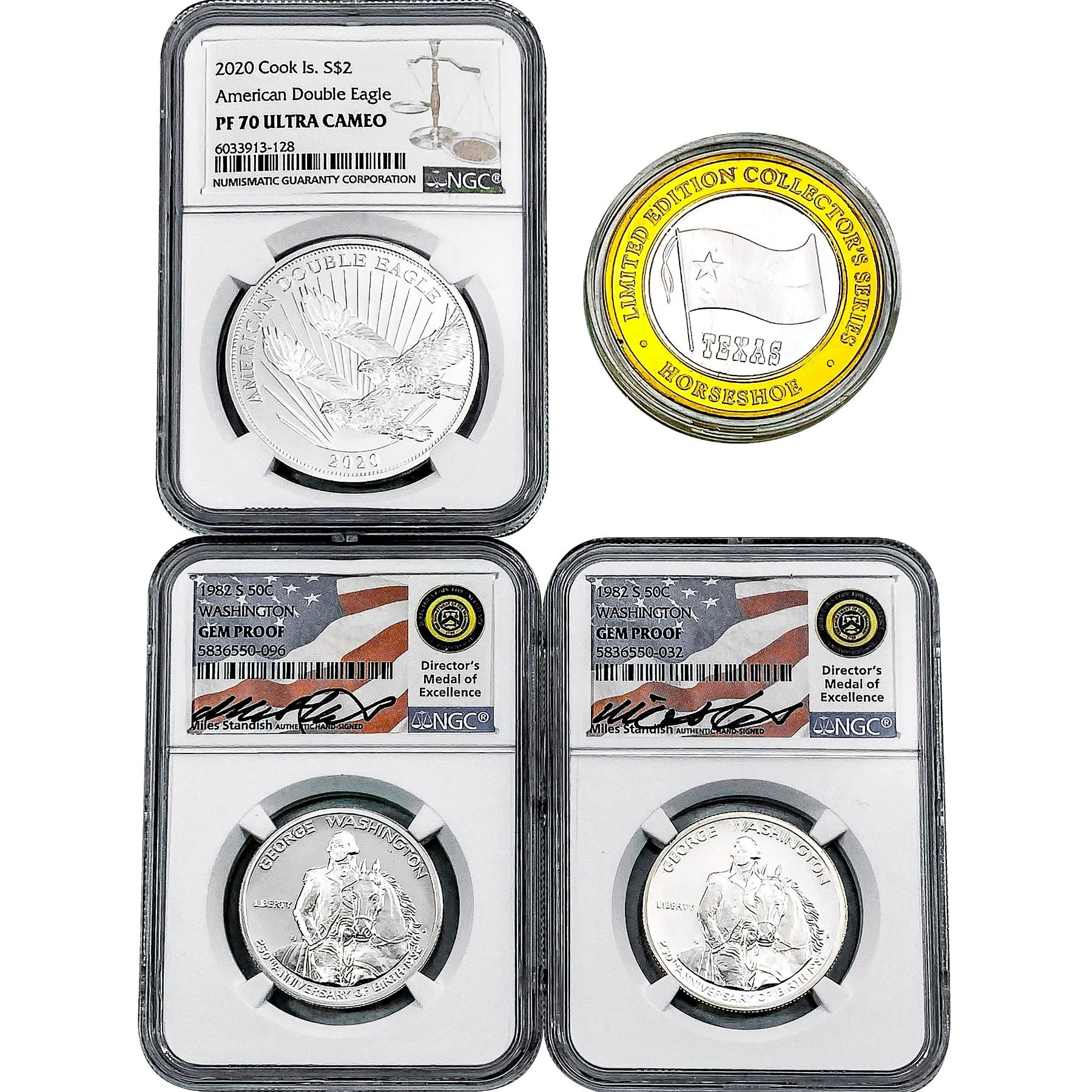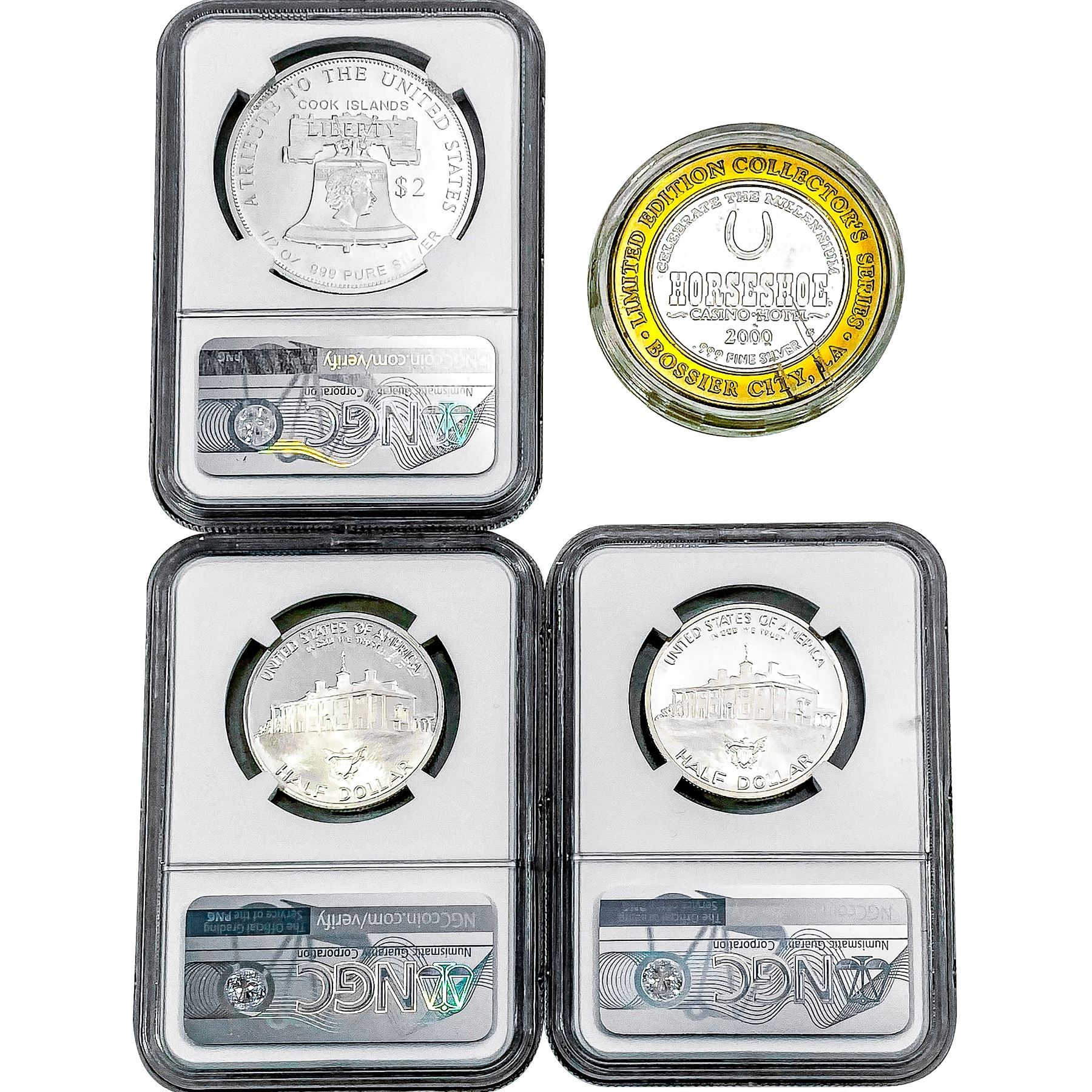 e. Coins sold referencing a third-party grading service are sold “AS IS” without any express or implied warranty, except for a guarantee by GSA that they are genuine. Removal or alteration of the holder, voids all of Bidder’s claims concerning that Product. Certain warranties may be available from the grading services and Bidders are referred to them for further details: Numismatic Guaranty Corporation (NGC), PO Box 4776, Sarasota, FL 34230, www.ngccoin.com/services/writtenguarantee.asp; Professional Coin Grading Services (PCGS), PO Box 9458, Newport Beach, CA 92658, www.pcgs.com/guarantee.html; ANACS, 6555 S. Kenton St., Ste. 303, Englewood, CO 80111; and Independent Coin Grading Co. (ICG), 7901 East Bellview, Ave., Suite 50, Englewood, CO 80111.