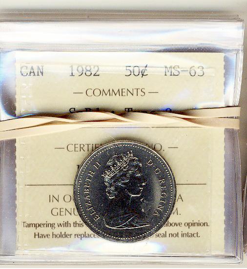 1982 50¢ SmBds; Type 2 ICCS MS63 Lot of 5 coins