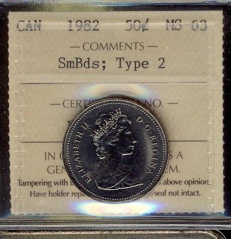 1982 50¢ SmBds Type 2 ICCS MS63.