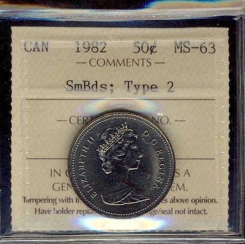 1982 50¢ SmBds Type 2 ICCS MS63.