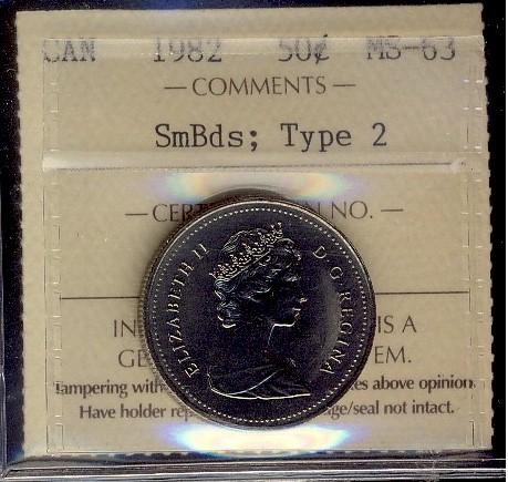 1982 50¢ SmBds Type 2 ICCS MS63.