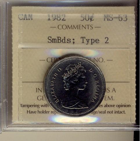 1982 50¢ SmBds Type 2 ICCS MS63