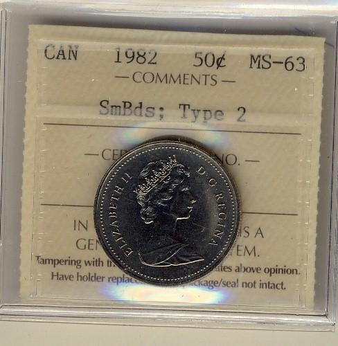 1982 50¢ SmBds; Type 2 ICCS MS63