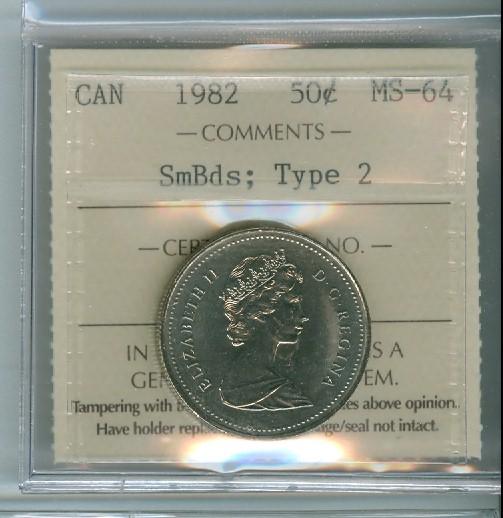 1982 50¢ SmBds Type 2 ICCS MS64.