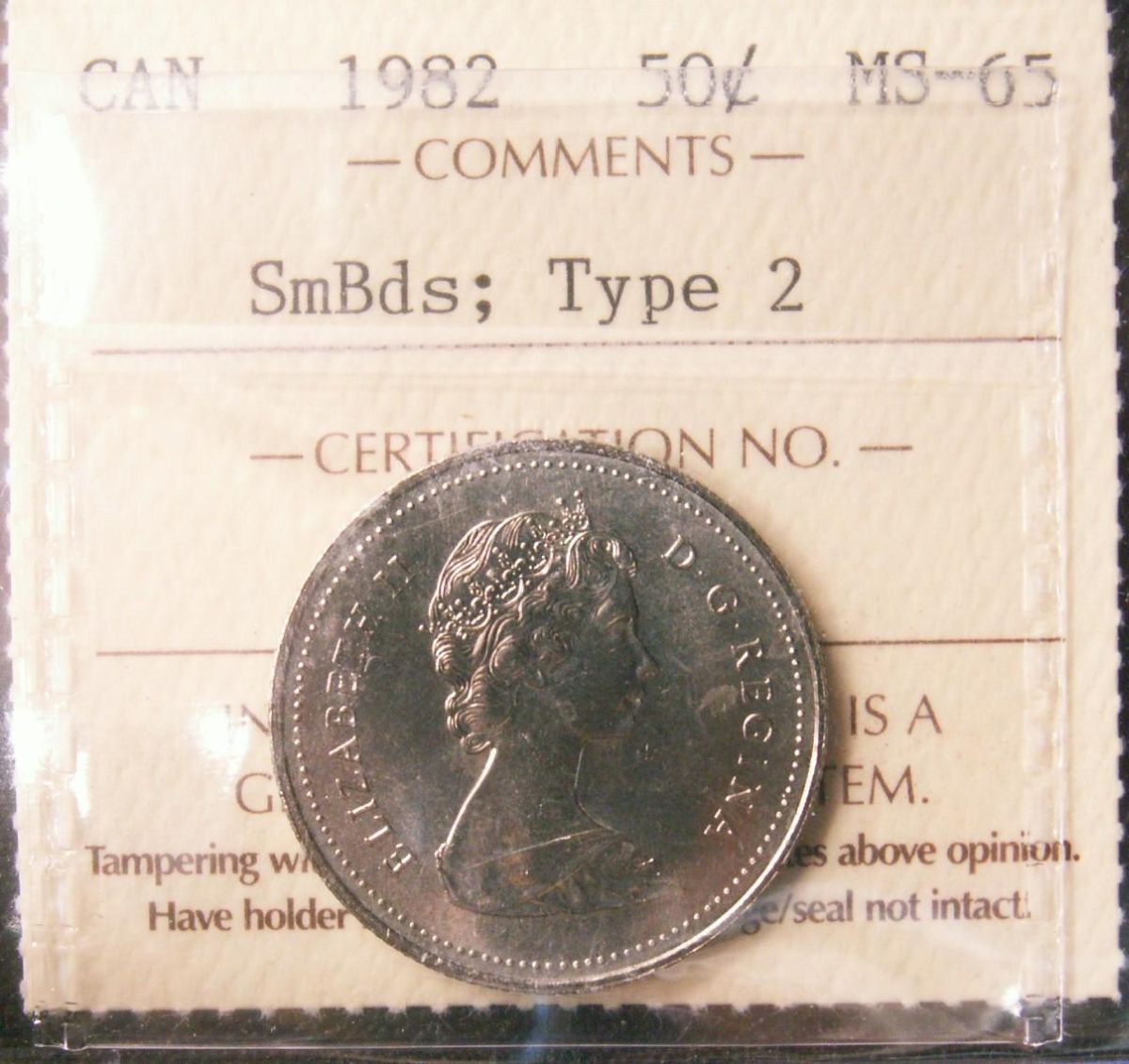 1982 50¢ SmBds Type 2 ICCS MS65.