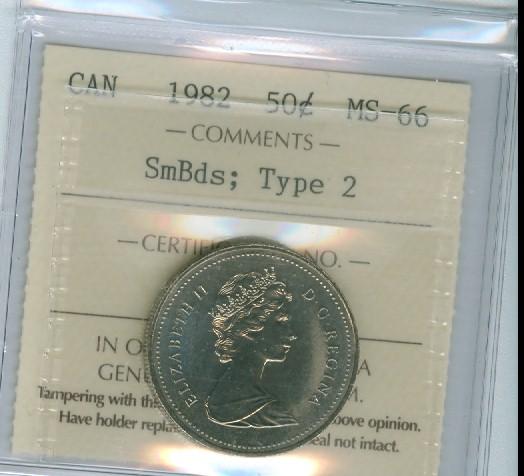 1982 50¢ SmBds Type 2 ICCS MS66. Tied for finest graded!