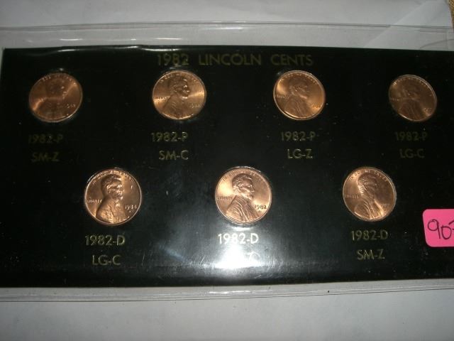 1982 7 COIN PENNY SET THAT INCLUDES 82P-SM-Z, 82P-SM-C, 82P-LG-Z, 82P-LG-C, 82D-LG-C, 82D-LG-Z & 82D
