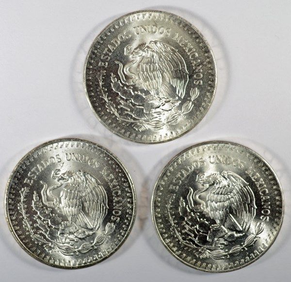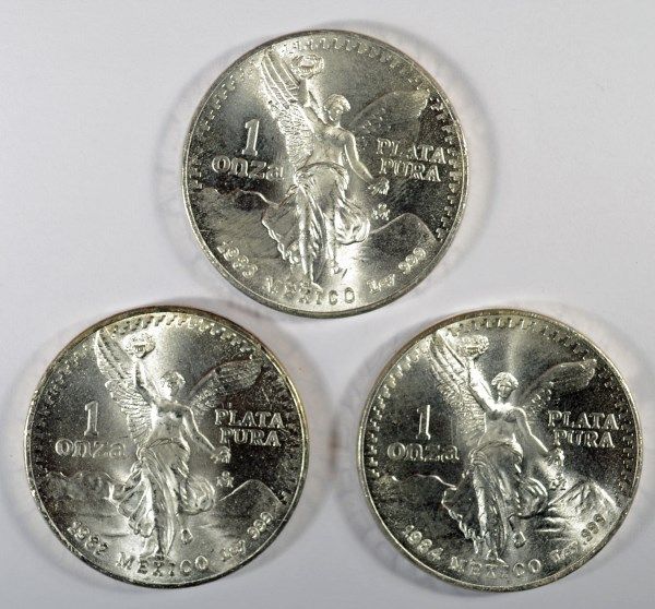 1982, 83, AND 1984 BU MEXICAN ONE OUNCE SILVER LIBERTADS IN DISPLAY PORTFOLIO