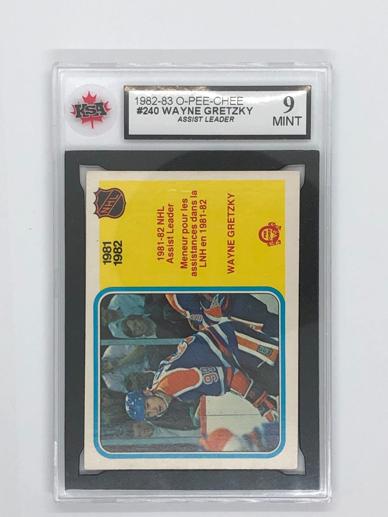 1982-83 O-PEE-CHEE #240 Wayne Gretzky (Assist Leader) - Graded 9 (Mint) by KSA Grading