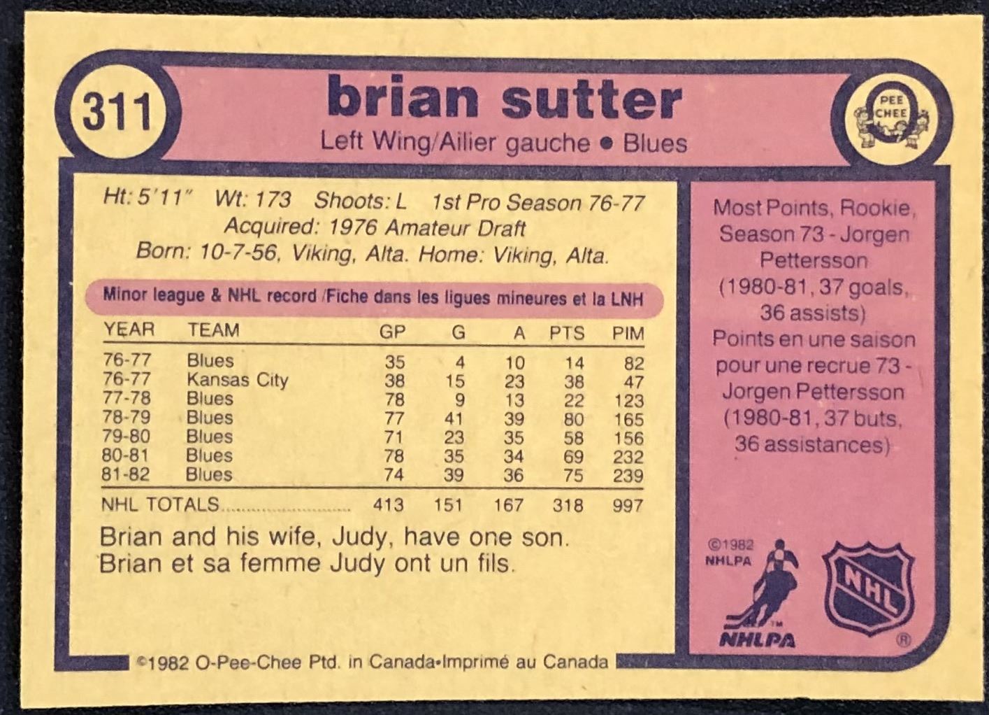 Card #311 OPC, NHL, hockey, vintage